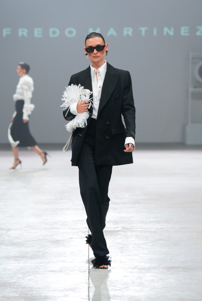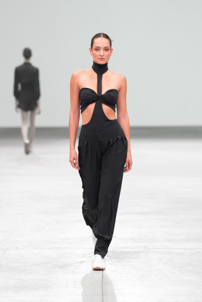 Alejandro Carlín presentó “Negro” (2025), que fusiona punk, minimalismo japonés y feminidad de los 50 explorando texturas y acentos metálicos en un solo color. BERNARDA se inspiró en cuatro materiales —cuero, mezclilla, lana y algodón— como metáforas de fuerza y armadura, rindiendo homenaje a guerreras anónimas. Amkie Gamus (por MELISSA) evocó la nostalgia de Acapulco con su inspiración en el ficticio “Hotel Los Caracoles”. Maison Manila (por QUIRELLI), en su décimo aniversario, presentó una colección sostenible inspirada en la palingénesis, enfocada en la durabilidad, reutilización y el concepto de “menos es más”. Fábrica de Punto con “Semiótica” apostó por lo esencial y duradero con prendas de algodón 100% reciclado, Yakampot (por ISOPURE) propuso ropa cómoda como un acto de autocuidado, celebrando la belleza imperfecta y real. 1/8 Takamura con “Carnaval” retrató el caos sagrado del tránsito y la transformación con una estética entre lo ancestral y lo futurista. Alfredo Martínez (por XIAOMI) se inspiró en la película Possession (1981) para crear una narrativa de tensión con siluetas precisas, contrastes de textura y una paleta de autoridad.